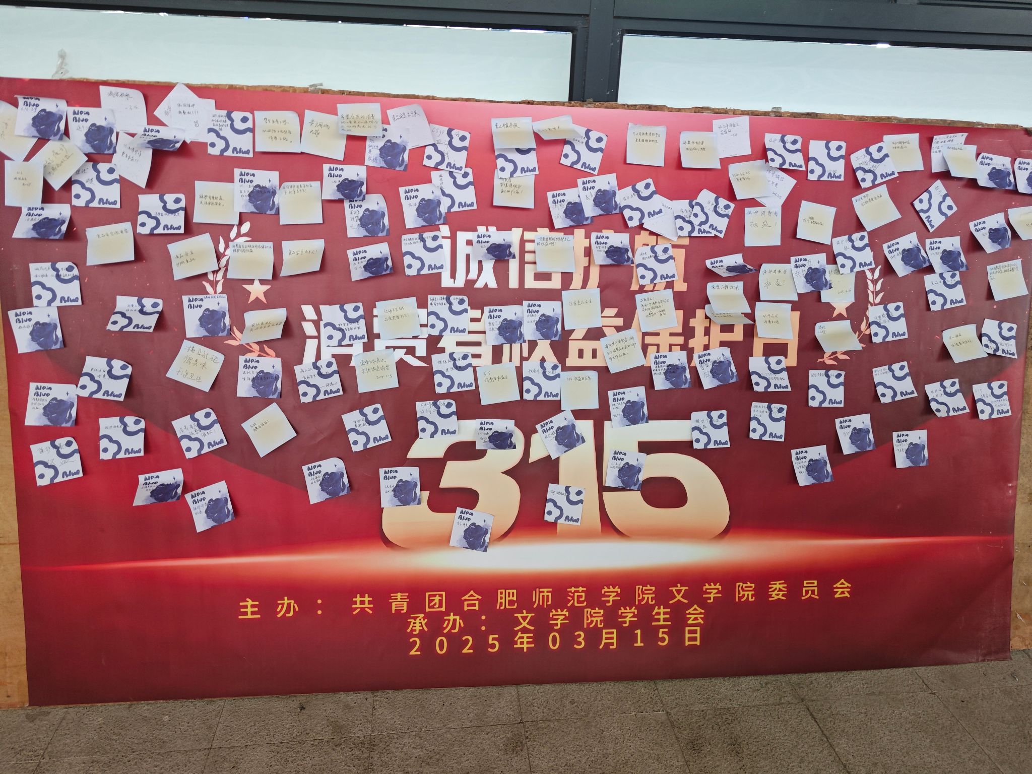 答题结束后,参与活动的同学在便利贴上写下自己对“3·15”权益日的感悟以及想对广大消费者说的话。一张张饱含同学们真挚情感和深刻思考的标语,在宣传展板形成了一道独特的风景线。此次活动不仅让同学们学到了实用的消费者权益保护知识,有效提升了大家的自我保护能力,还为同学们搭建了了一个充分表达自我、传递心声的平台。