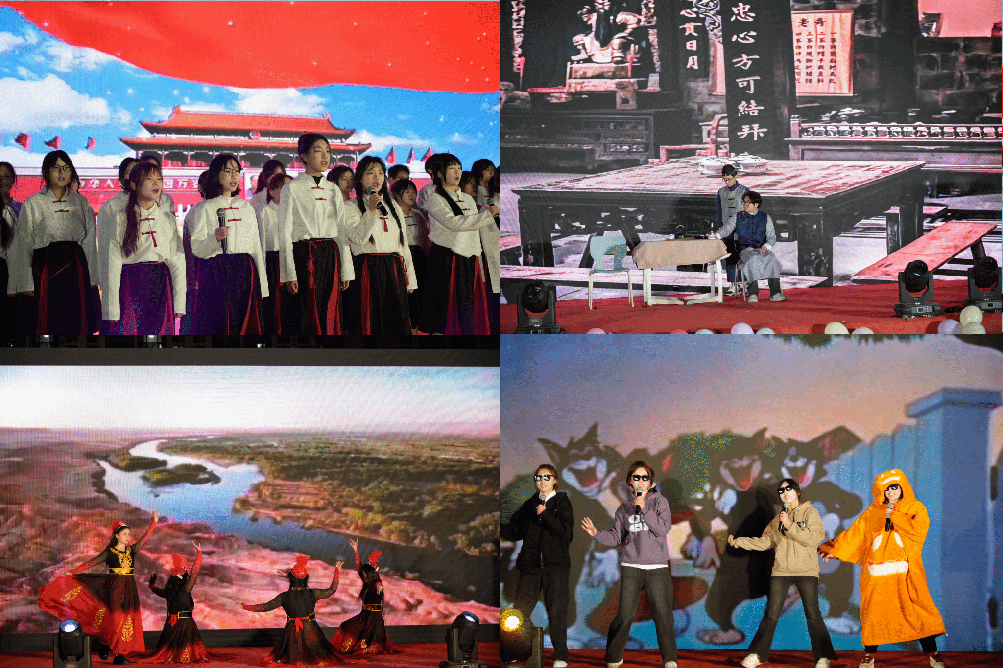 跨越新元,奔赴新愿,灯火辉煌的晚会舞台,诉说着文院学子回望过去的担当与实干,回响着展望2025年的祈愿与憧憬。乙巳新启、文院新韵、展耀新程,3个篇章拉开beat365英国官网网站元旦迎新晚会的精彩大幕。话剧、朗诵、舞台剧、器乐演奏、舞蹈、歌曲串烧等节目轮番上演,异彩纷呈的视听盛宴掀起现场阵阵热潮。话剧《字正腔圆》铿锵有力,古典舞《红马》意蕴悠长,大合唱《万疆》更是余音绕梁、气势磅礴。一幕幕生动的表演,一幅幅火红的画卷,文院学子用心、用情、用力传递着对祖国的无限热爱、对生活的无限热忱和对时代追梦的无限憧憬。