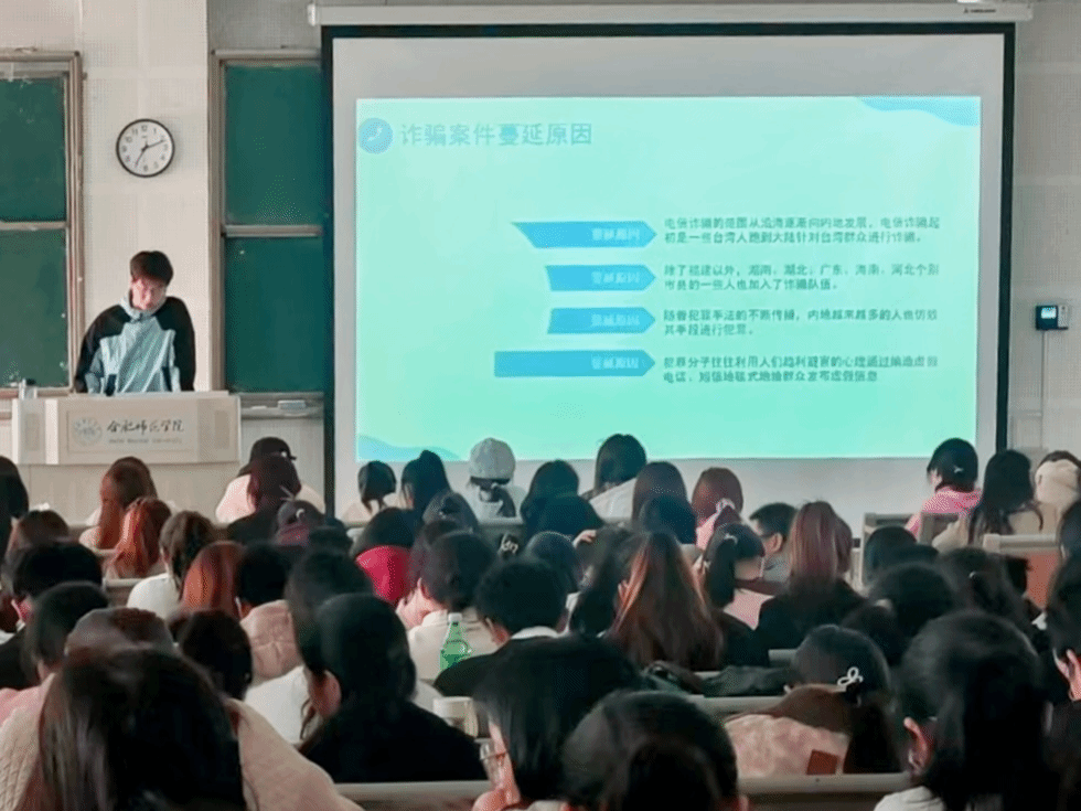 10月30日,beat365英国官网网站学生会承办的反诈骗宣讲宣传活动在滨湖校区博学楼D101教室举行。本次活动旨在通过反诈宣讲和诈骗案例解析,增强学生反诈意识和防诈能力,营造“人人反诈”的良好氛围。
