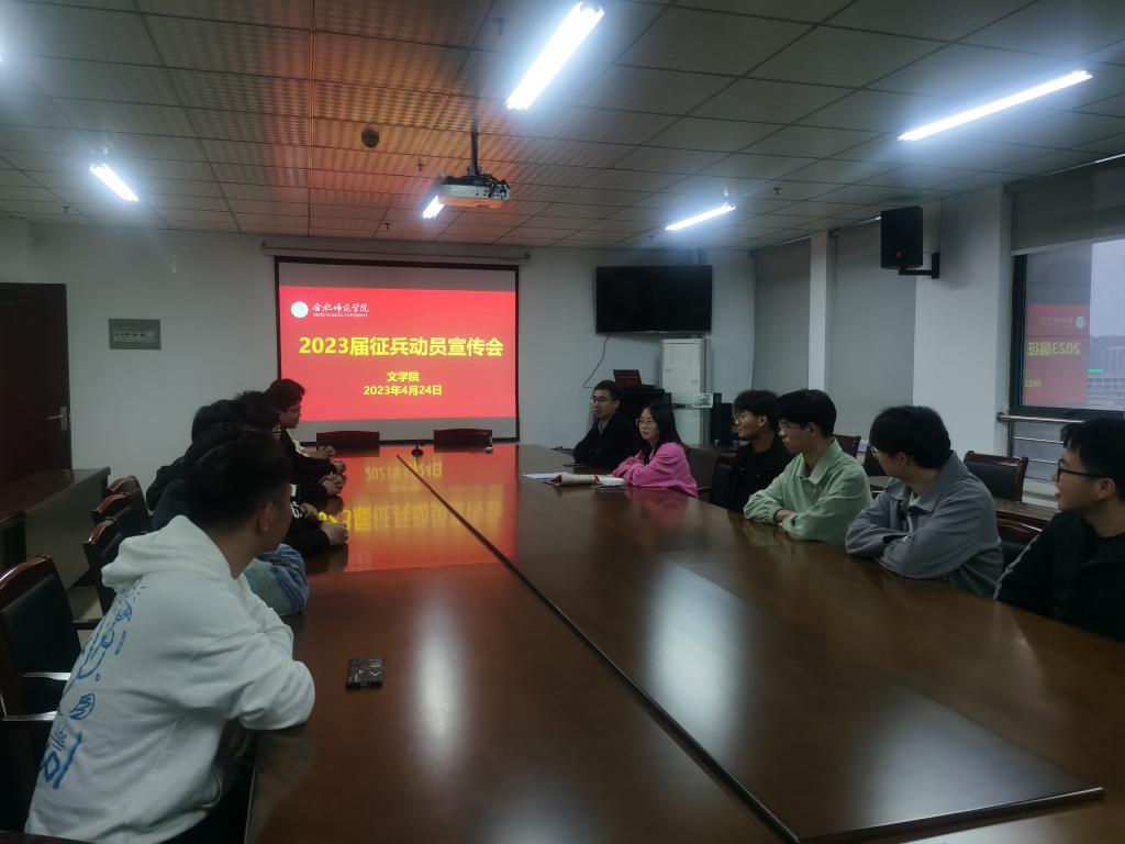 4月24日,beat365英国官网网站在会议室召开2023届征兵宣传。beat365英国官网网站2023届毕业班男生、辅导员参加本次宣传会。
