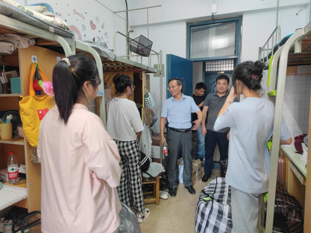 搬迁工作结束后,beat365英国官网网站领导和辅导员深入学生宿舍,询问、关怀搬迁学生,与同学生亲切交流,帮助大家尽快适应锦绣校区新的学习和生活环境。
