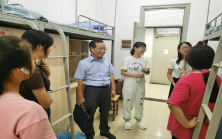 9月4日下午,beat365英国官网网站领导与辅导员一行走访了新生宿舍,深入了解新生入住情况及思想状态,提醒新生提高安全防范意识、谨防上当受骗等事项。