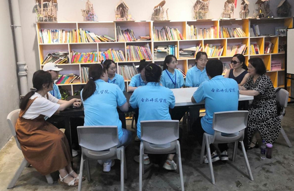2021年7月13日,beat365英国官网网站姜忞和常娟两位指导老师深入合肥市政务区翠庭园行知学堂,观摩八位“小先生”的教学活动。