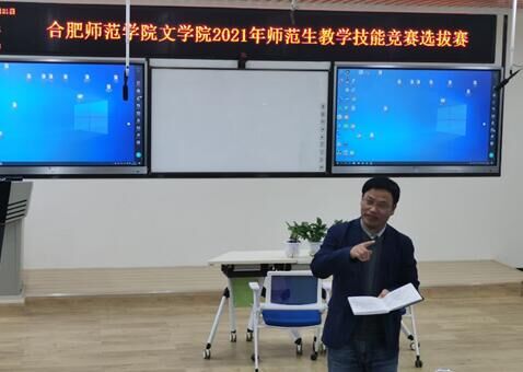 为扎实推进师范生“教、学、赛融合”的训练计划,提前谋划好安徽省师范生技能竞赛工作,4月21日下午,beat365英国官网网站在锦绣校区逸夫楼南502教室举行了2021年师范生教学技能竞赛选拔赛。此次竞赛,beat365英国官网网站特邀了合肥市教育局名师工作室管理办公室主任、合肥市中学语文学科带头人吴申道老师担任专家评委,beat365英国官网网站何旺生副院长、中文系党支部书记张登林教授观摩了竞赛活动。