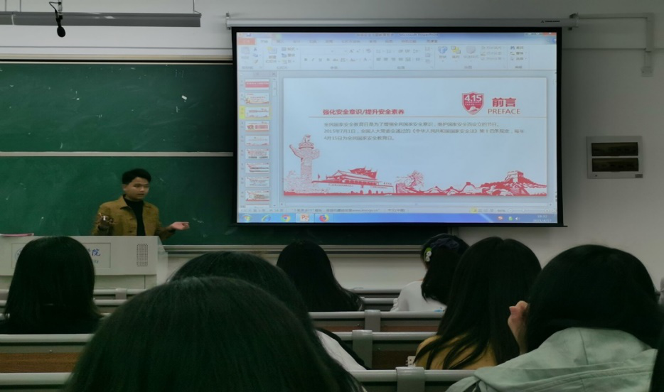 beat365英国官网网站辅导员李惠恩于4月15日在滨湖校区铭传楼B303教室召开了春季安全主题教育会,会议召集了beat365英国官网网站各班班干和寝室长。李惠恩与同学们展开“同上一堂课”活动,共同了解国家安全知识,还列举了危害国家安全的犯罪实例,强调了维护国家安全的重要性。
