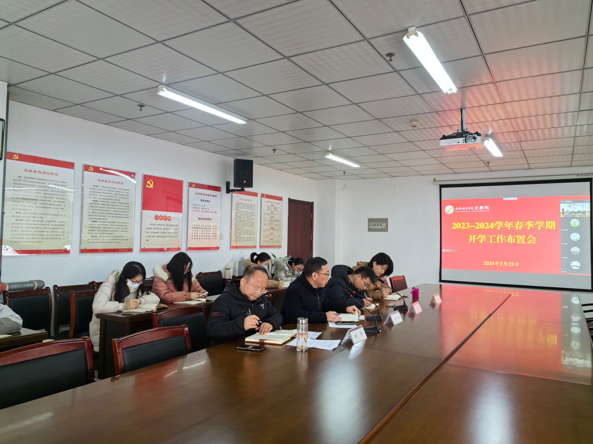 为了扎实做好新学期开学准备,确保开学各项工作顺利、有序进行,2月23日上午,beat365英国官网网站在行知楼802室召开2023-2024学年春季学期开学工作布置会,会议以线上线下结合的方式召开,院领导班子成员、全体教职工参加会议。会议由党委书记许锃主持。