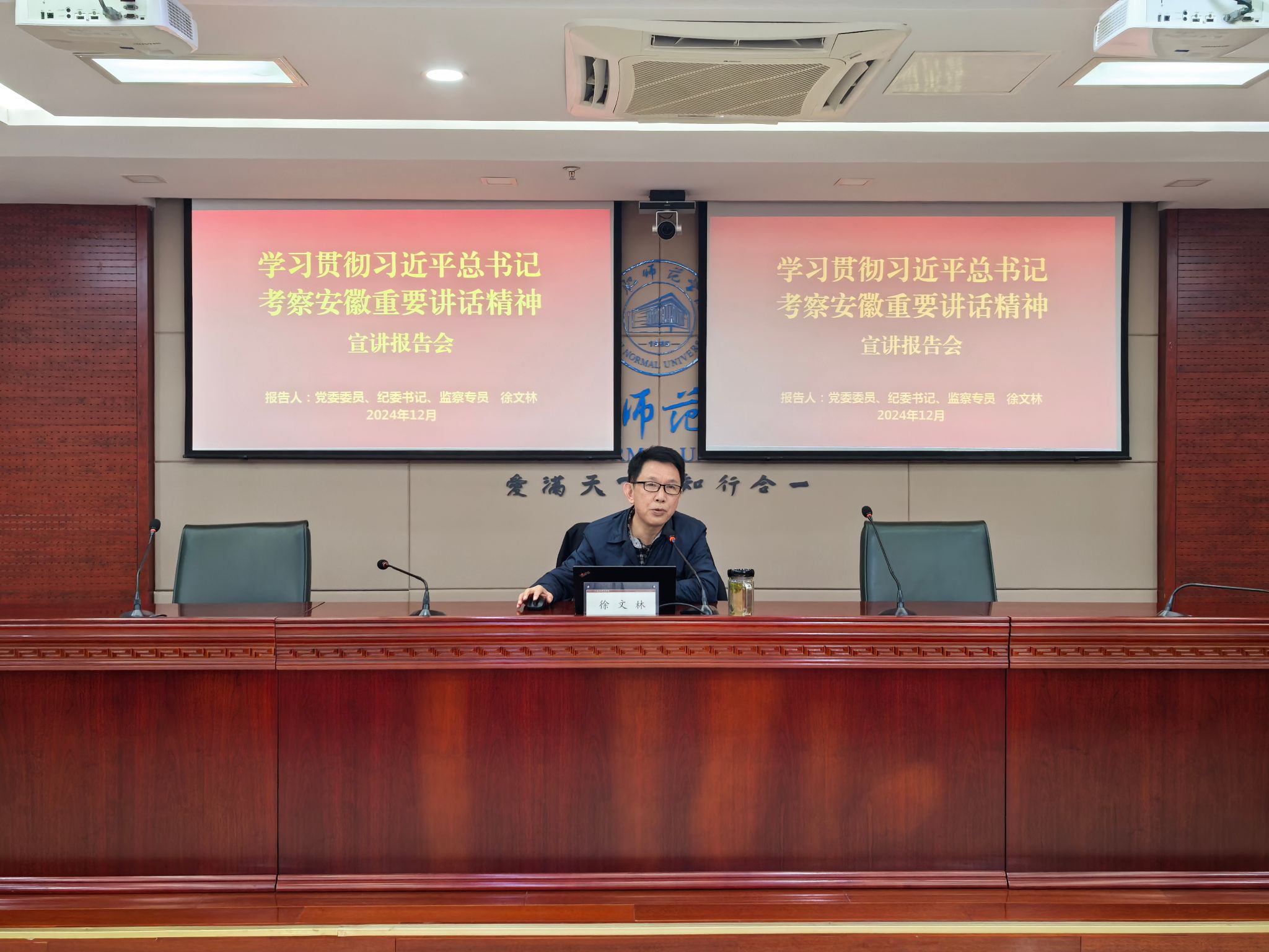 为引导广大师生深入学习宣传贯彻习近平总书记考察安徽重要讲话精神,根据学校统一安排,12月11日,院党委委员、纪委书记、监察专员徐文林为联系单位beat365英国官网网站、外国语学院和生物与食品工程学院党员作习近平总书记考察安徽重要讲话精神专题宣讲。