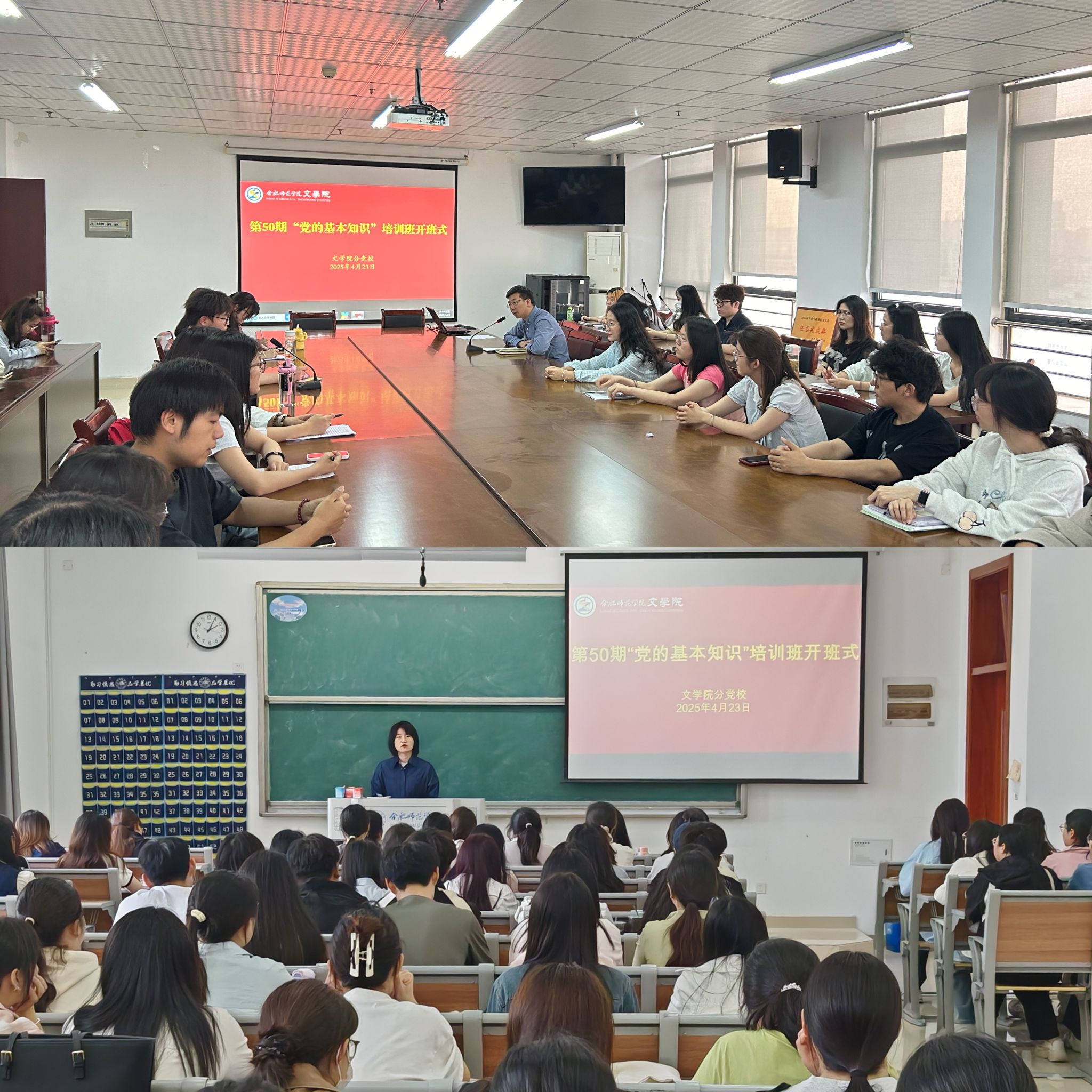 为进一步加强入党积极分子教育培训,根据学校党委和党校部署安排,4月23日,beat365英国官网网站第50期“党的基本知识”培训班在锦绣、滨湖两校区同步开班。beat365英国官网网站党委书记许锃、党委副书记夏娟、分党校班主任程正和培训班全体学员参加开班式。