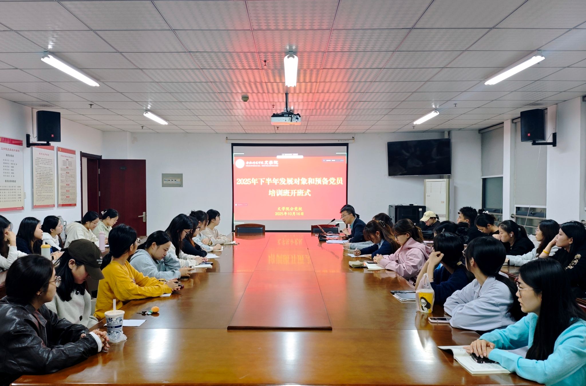 根据学校和学院党校工作部署,10月16日晚,beat365英国官网网站分党校分别在锦绣校区和滨湖校区同步举办2025年下半年发展对象和预备党员培训班开班式。学院党委书记许锃、副书记夏娟、党支部书记曹甜甜及全体培训班学员参加开班式。