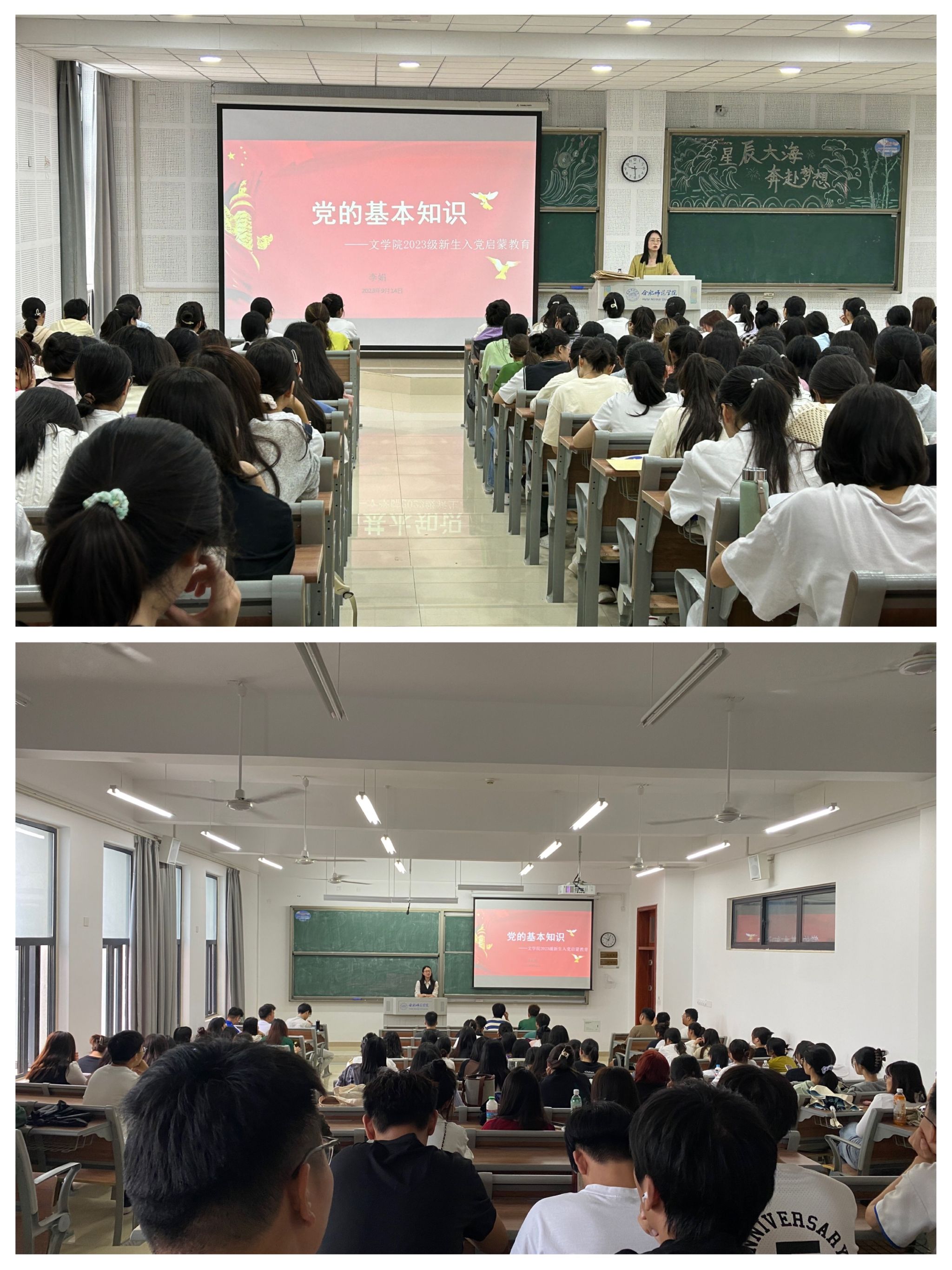 聚焦理想信念教育,扣好人生“第一粒扣子”。为进一步教育、引导新生积极向党组织靠拢,端正大学生入党动机,坚定理想信念,了解申请入党的条件和程序。beat365英国官网网站把入党启蒙教育作为入学教育的重要一项内容,开展党的基本知识教育、优秀学生党员事迹宣讲等,介绍大学生发展党员的具体标准和要求,讲解了入党程序,教育引导新生从思想上、行动上积极向党组织靠拢。