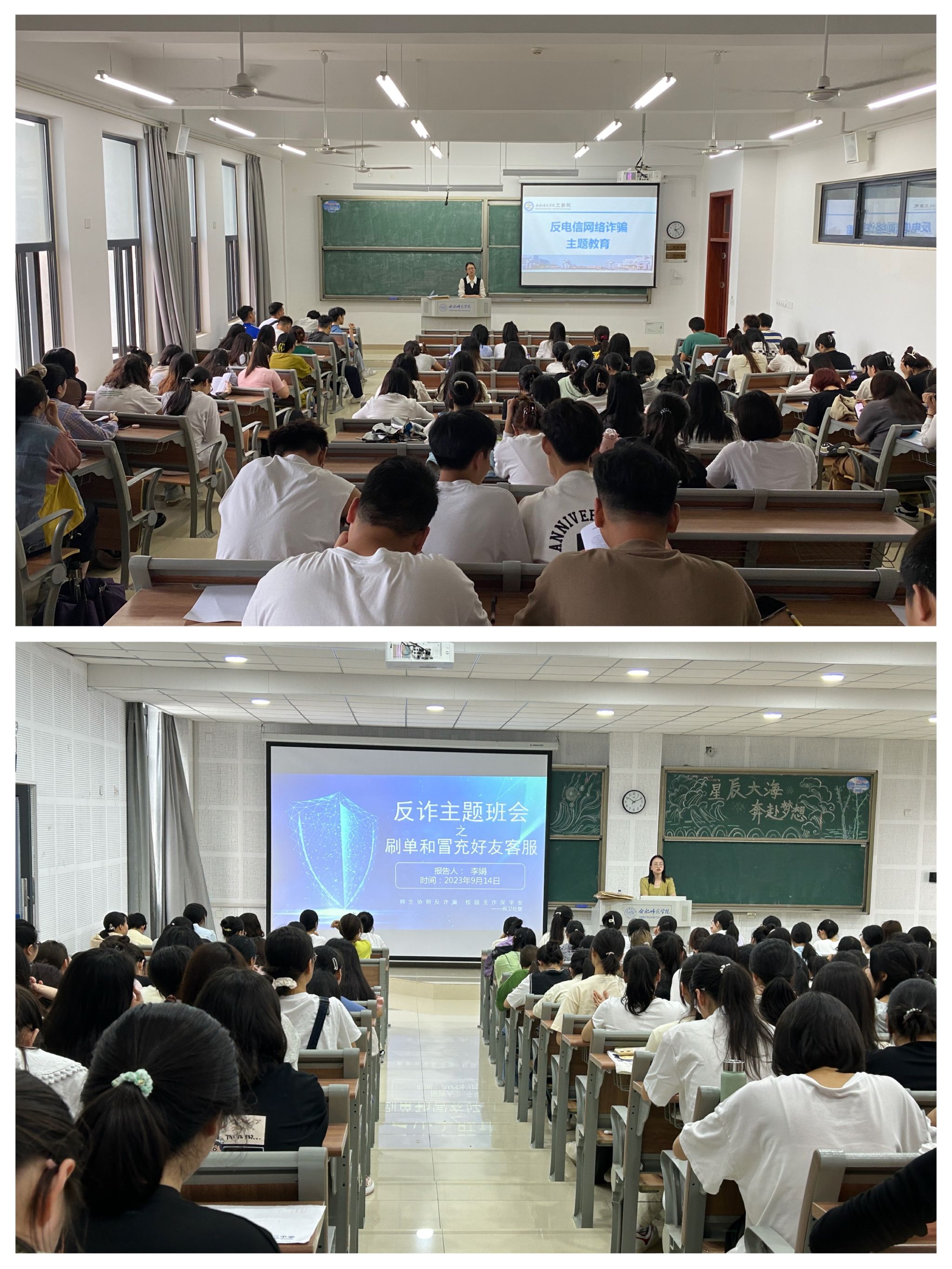 聚焦安全法治教育,提高安全防护意识。学院利用主题班会、寝室走访等多种形式,组织开展人身安全、防电信诈骗等多项安全教育,提高新生各方面的安全意识。通过对校园贷案例、典型火灾案例、寝室安全案例、电信诈骗案例进行分析,深入浅出,提醒同学们时刻注意身边的安全隐患,并提出明确要求,要求学生重视安全问题,掌握必要的安全意识和防护技能。针对新生军训期间的安全问题,不断强调新生在军训期间要提高健康防护意识,切实保障新生在校期间各项活动的有序开展。