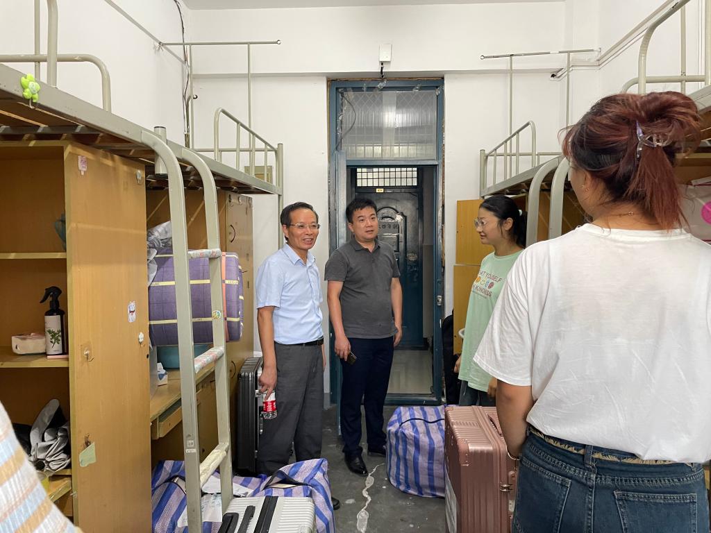 走访中,李旺生、陈好一行查看了宿舍住宿环境,与学生亲切交流,详细询问了学生对新环境是否适应,食堂饭菜是否可口,并认真倾听了学生对此次搬迁工作的意见和建议。李旺生对学生服从大局、听从安排,支持和配合学校工作的行为表示赞赏,并嘱咐同学们在内务整理中注意安全、互相帮助,安全有序地入住“新家”。对于返校的学生,强调大家落实三天两检核酸检测制度,遵守学校疫情防控政策,希望大家安心学习的同时,一定要健康作息、遵纪守规,注意勤通风、勤洗手、戴口罩,以实际行动做好疫情防控防护,展现beat365英国官网网站学子的担当与作为。
