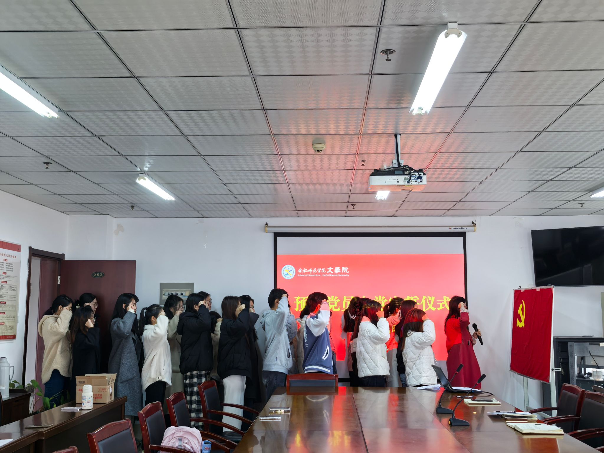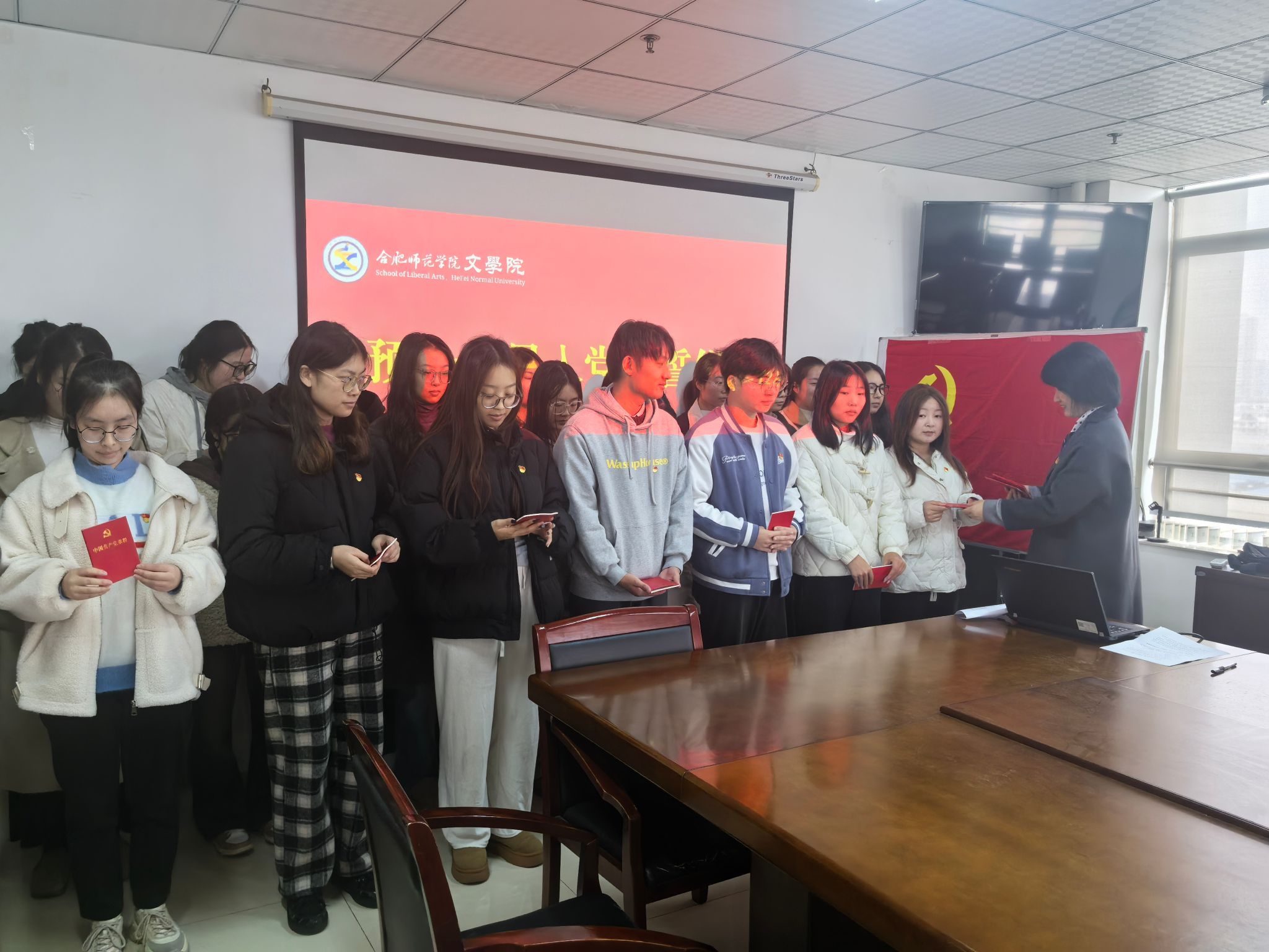 仪式在高昂的《国际歌》声中拉开帷幕。随后,疏淑进宣读新发展预备党员名单。