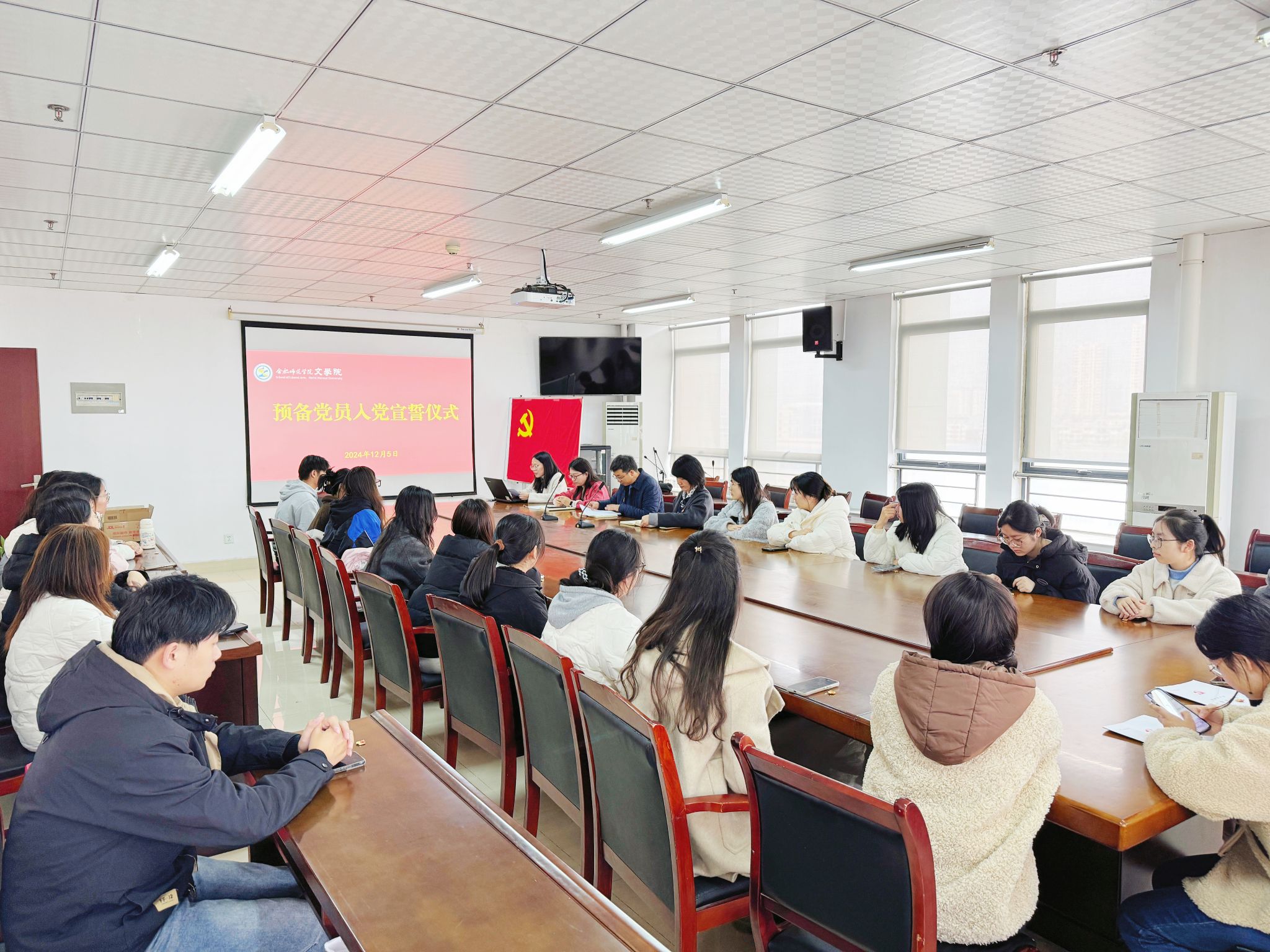 为了进一步增强新党员入党荣誉感,12月5日,beat365英国官网网站在行知楼802室举行2024年下半年新党员入党宣誓仪式。学院党委书记许锃、党委副书记夏娟、学生第二党支部书记曹甜甜,25名新党员参加此次宣誓仪式。宣誓仪式由组织员疏淑进主持。