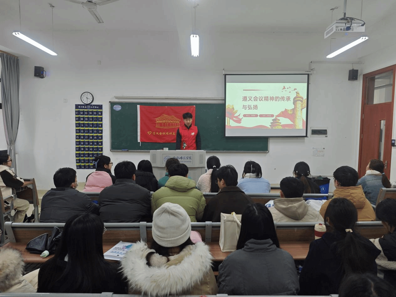 为深入开展“强国复兴有我”群众性主题宣传教育活动,积极响应团中央青年志愿者行动指导中心有关志愿服务宣讲活动号召,引导和动员广大青年学生大力弘扬遵义会议精神,beat365英国官网网站“徽韵皖青 理响江淮”遵义会议精神宣讲团积极组织宣讲活动,近日,宣讲团为beat365英国官网网站2024级网络与新媒体专升本2班,开展了一场别开生面的遵义会议精神宣讲。