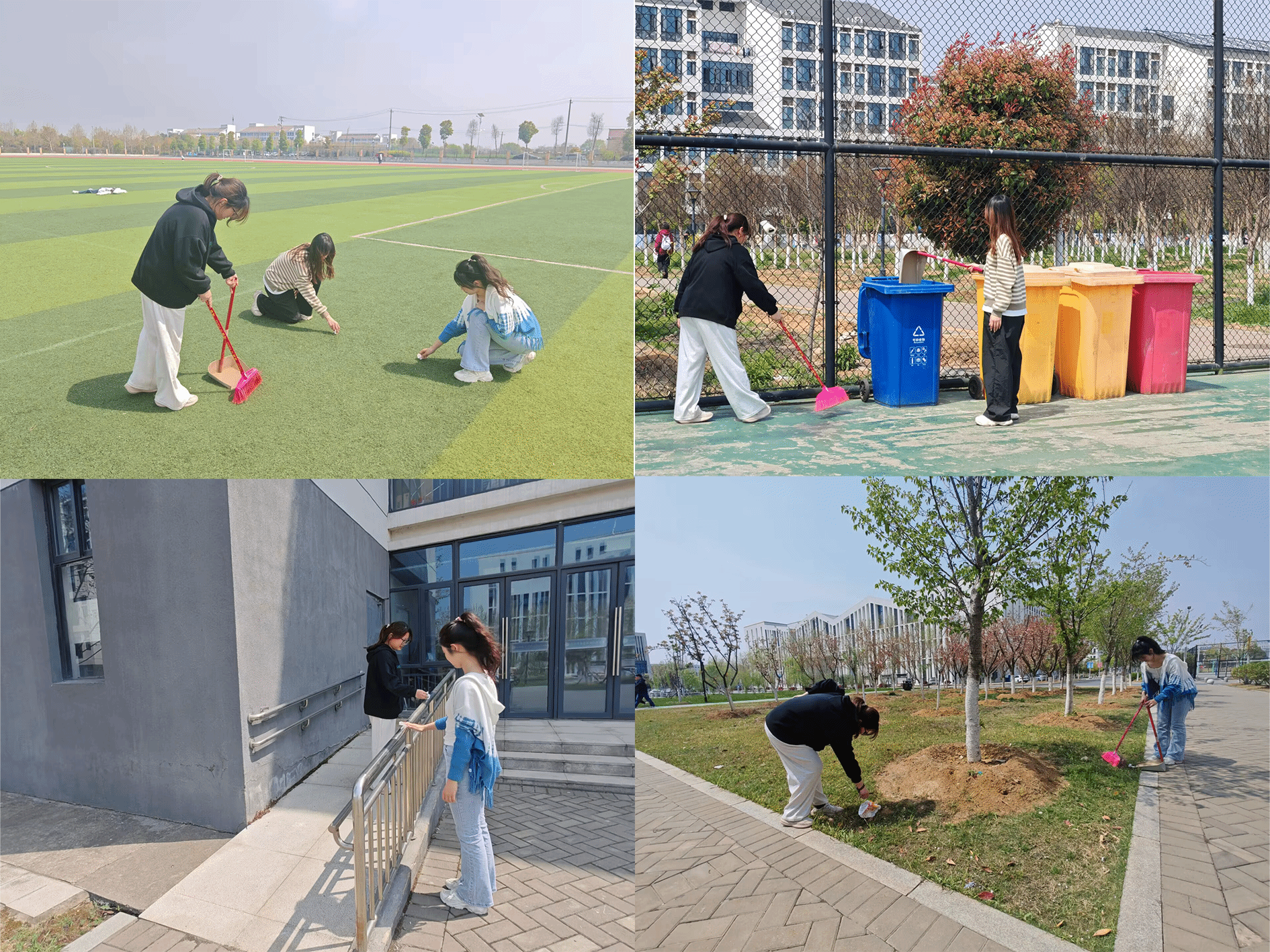 3月26日和30日,为维护干净整洁的校园环境,鼓励学生在劳动实践中感悟志愿服务之美,beat365英国官网网站学生会组织志愿者分4个小组开展校园清扫活动,分别对教学楼、操场、绿化带等区域开展“地毯式”清扫。学生们手持清洁工具,认真清理路面垃圾、擦拭宣传栏,尽心尽力、齐心合力,用实际行动营造良好的校园环境,守护共同的家园。为期两天的清扫校园志愿活动的开展,使校园环境焕然一新,不仅增强了同学们的环保意识和服务意识,也深化了对“劳动最光荣”的认知。