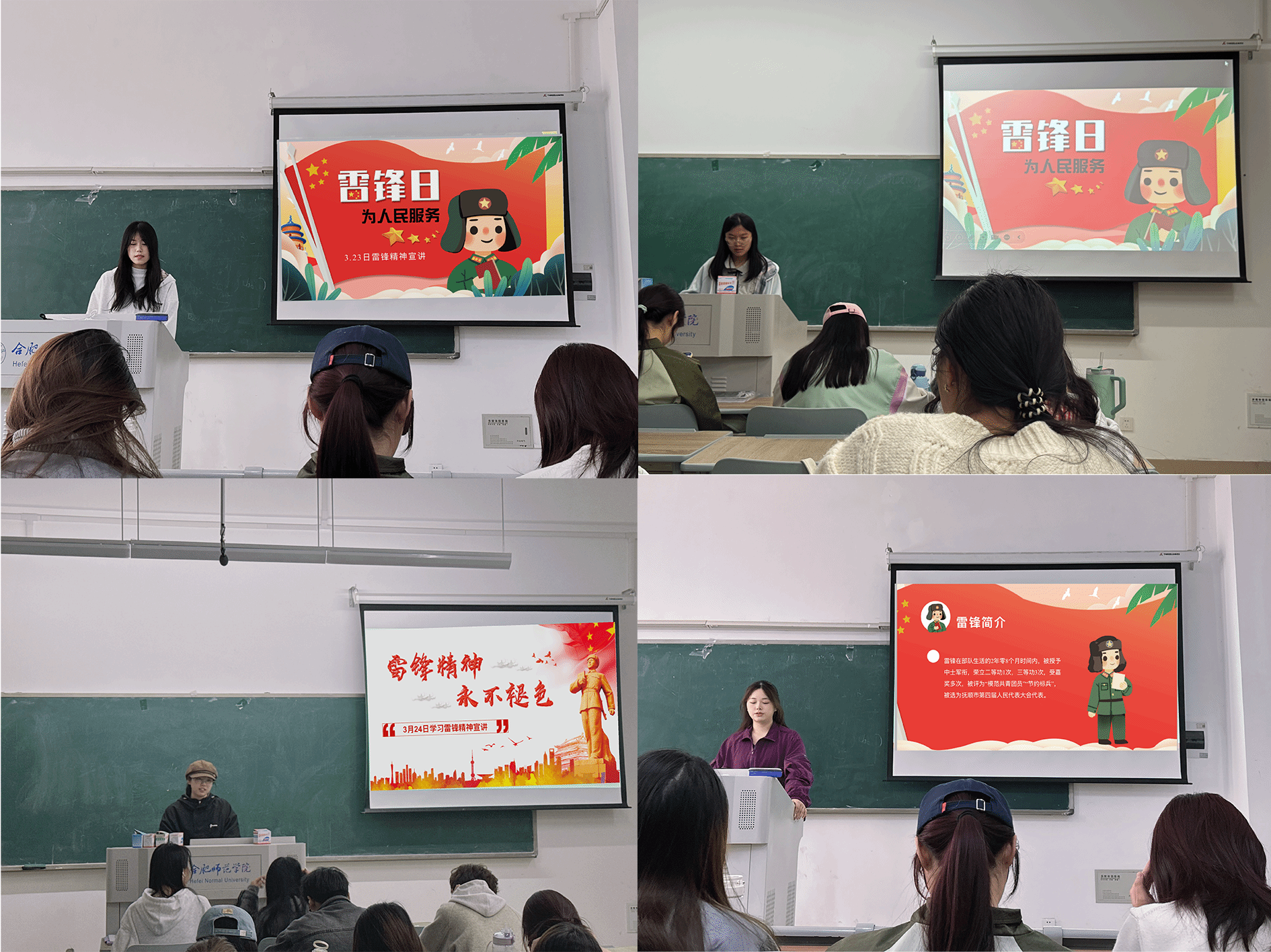 3月22日至23日,借助2024级新生晚自习时间,beat365英国官网网站“学雷锋精神”宣讲团队分赴5个班级展开宣讲,围绕“忠诚、坚韧、敬业、豁达、感恩”五个关键词,广泛搜集与雷锋同志相关的珍贵采访画面和鲜活生动的事迹案例,精心制作了宣讲PPT,全面回顾了雷锋同志克己奉公的感人事迹,再现了革命先辈坚如磐石的政治信仰。宣讲过程中,结合青年责任担当与青春实践,号召同学们从身边小事做起,将雷锋精神融入日常学习生活,践行“奉献、友爱、互助、进步”的志愿精神。活动现场,同学们认真聆听,积极互动,掌声连连。