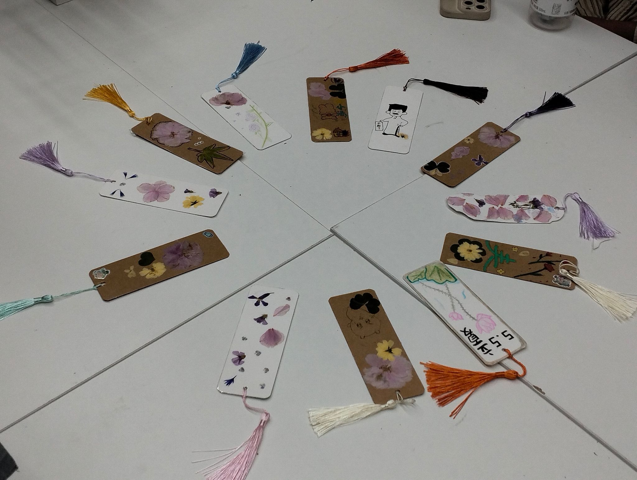 制作完成后,不断有同学上台向大家展示作品,“干花象征着成长,祝我们大家都能完成成长的蜕变,迎来绽放的时刻!”流苏飘飘的干花书签在灯光下流转光影,不仅有呼应传统节气的民俗设计,也有隐喻“雨生百谷”的巧思之作。同学们精彩的展示一时间激发了大家的创作能力和动手能力,新颖别致的作品不断涌现。