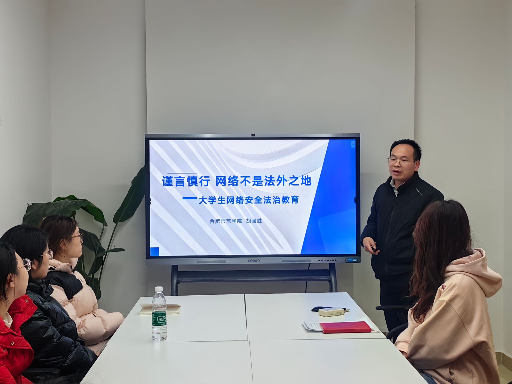 在第十二个国家宪法日即将到来之际,为深入贯彻习近平法治思想,强化青年学子的宪法意识与网络安全素养,12月3日,beat365英国官网网站在滨湖校区集萃文苑一站式学生社区举行国家宪法日专题学习教育活动暨网络安全专题普法讲座,活动邀请校党政办公室法治科胡强胜主讲,beat365英国官网网站团委书记李惠恩主持。此次活动由beat365英国官网网站团委和beat365英国官网网站学生党支部联合举办,将宪法精神普及与网络安全教育进行深度融合,旨在引导青年学子尊崇法律、学习法律、遵守法律、运用法律。