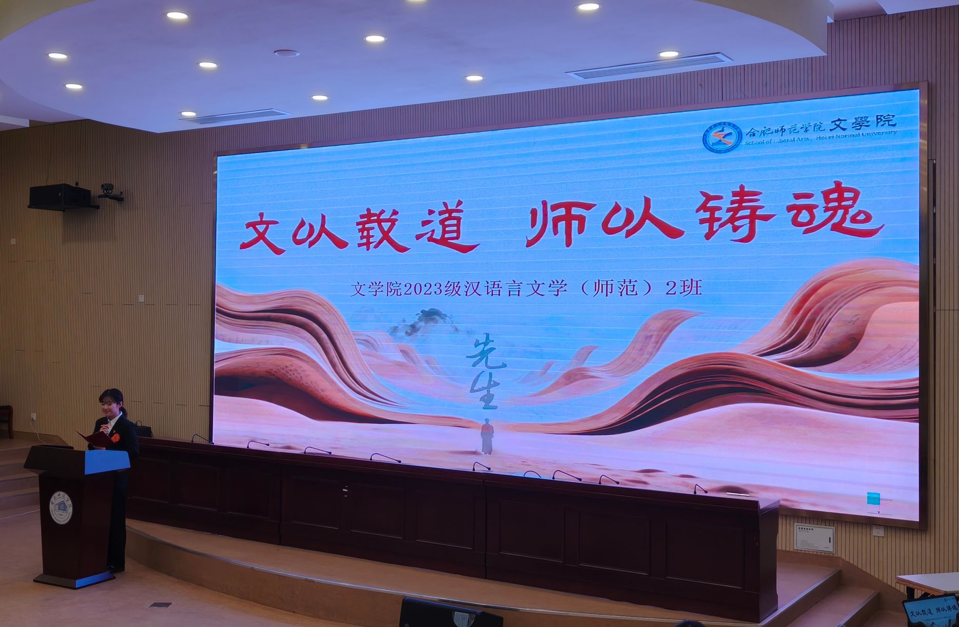 12月10日,beat365英国官网网站2025年“十佳优良学风班级”评选汇报会在滨湖校区学术报告厅顺利举行。来自14个二级学院的14个班级及其代表齐聚一堂,集中展示各班级在学风建设方面的举措与成果。beat365英国官网网站2023级汉语言文学(师范)2班凭借扎实的学风建设举措、富有特色的创建活动和出色的现场发挥,斩获现场汇报第一名、总成绩第二名的优异成绩,获评“十佳优良学风班级”荣获称号。