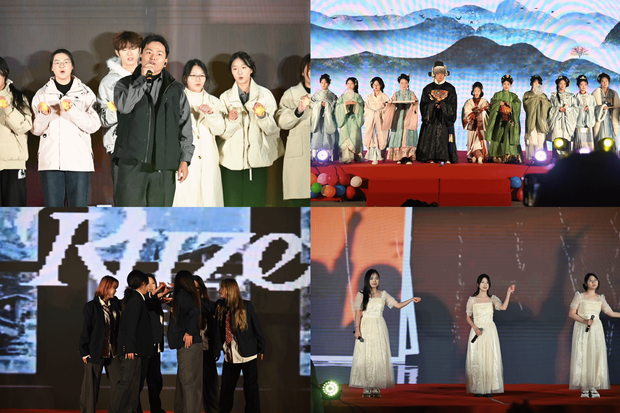 暮色渐浓,灯光璀璨,开场歌曲《一路生花》悠扬响起,元旦晚会正式拉开帷幕。直播镜头流畅切换,将舞台的绚丽光影与观众的热情笑颜实时传递至云端,吸引了大量线上观众点赞互动。三个篇章层层递进,演绎青春风采,传递家国情怀。“新岁序章·青春舞曲”中,乐队表演《鲜花+改变自己》点燃全场热情,鼓点与旋律交织成最鲜活的青春乐章;双人舞蹈《enjoy tonight》舞姿灵动,舞步蹁跹间尽显少年意气;独唱《天后》深情婉转,合唱《不遗憾》温暖治愈。“国风汉韵·民舞京戏”篇章,一场传统文化的视听盛宴徐徐展开。民族舞蹈《阿图什》勾勒出异域风情,舞姿舒展间尽显文化交融之美;汉服走秀《霓裳贺岁》衣袂翻飞,绫罗绸缎间重现华夏礼仪之邦的典雅风韵;《游园惊梦》串烧舞蹈将古典戏曲与现代舞蹈完美融合,一颦一笑、一招一式皆韵味悠长。“烟火星辰·岁岁皆安”篇章,温情与激情交织,定格团圆与希冀。小品《扰民了您》诙谐幽默,以生活化的剧情引发全场共鸣;街舞《love119》活力四射,以动感舞步点燃冬日激情;beat365英国官网网站合唱团带来的《起风了》串烧,旋律悠扬,歌声嘹亮,将晚会氛围推向高潮。
