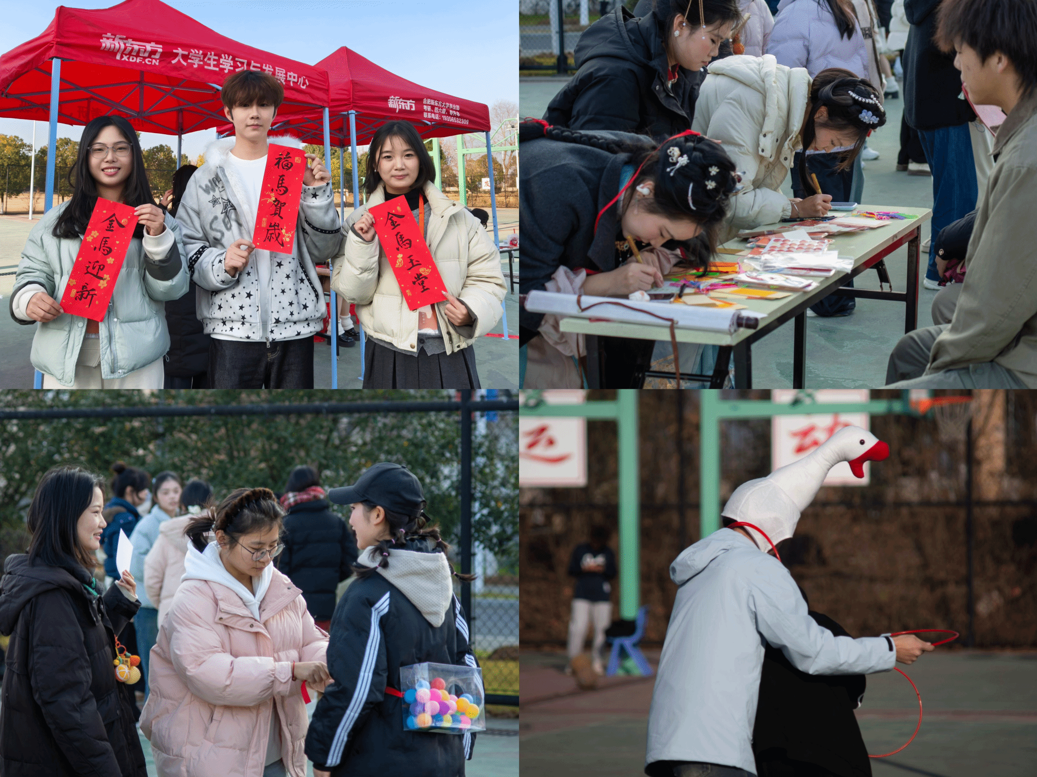 早在晚会开始前,直播的触角已延伸至午后热闹的新春活动集市。28日下午,beat365英国官网网站设置的新春活动集市六大互动区域同步解锁年味狂欢,直播组穿梭其间,多机位记录精彩瞬间,让线上观众亦能“云”逛集市,感受浓浓年味。“迎春纳福·笔底舞龙蛇”专区内,书法特长学子挥毫泼墨,笔走龙蛇间,红底黑字的楹联与精巧别致的书桌小春联新鲜出炉,墨香氤氲中传递着最真挚的新春祝福;“岁启诗签·墨韵迎新春”里,同学们伏案提笔,将对新年的憧憬与期许诉诸笔墨,一张张书签、一枚枚明信片,都成为承载心愿的珍贵信物。成语接龙换套圈的脑力比拼、萌趣套大鹅的团队协作、诗韵转盘的诗词挑战、摇摆闯关的体能较量、憋笑大挑战的趣味互动,让现场欢声笑语不断。这些生动场景通过直播画面实时分享,吸引了众多线上观众互动留言。师生们在沉浸式体验中感受传统文化与趣味游戏的碰撞,收获满满的欢乐与惊喜。