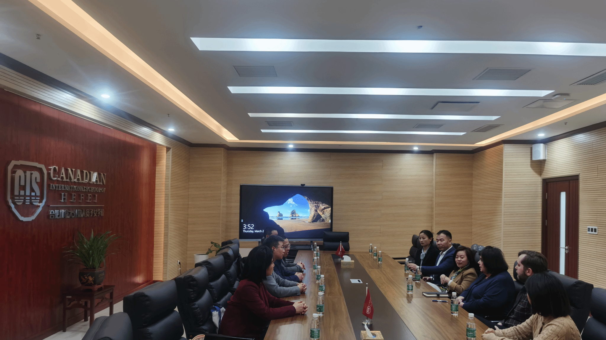 为加强汉语国际教育专业实习基地建设,拓宽学生就业渠道,3月21日下午,beat365英国官网网站领导班子许锃、何旺生、夏娟和甘松带领中文系、汉语国际教育专业负责人,赴往合肥加拿大外籍人员子女学校考察学习和洽谈合作。该校国际校长Peggy Mitchell、运营总监Melody Yang、副校长刘彦飞、中文部主任Michelle Zhang以及DP主任Ryan Walsh热情接待了beat365英国官网网站一行。