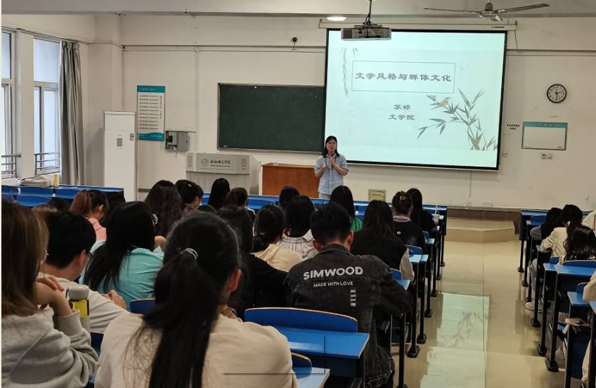 5月11日下午,beat365英国官网网站副教授苏婷老师在锦绣校区逸夫楼A106教室举行了主题为“文学风格与群体文化”的学术报告,beat365英国官网网站2020级汉语言文学专业(师范)的学生到场聆听了报告。