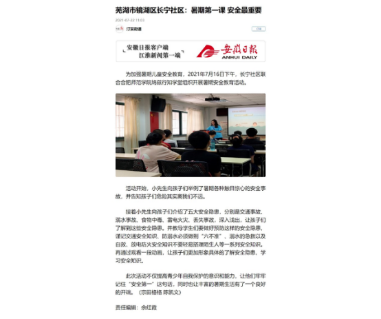 安徽新闻网报道我院芜湖鸠兹行知学堂活动