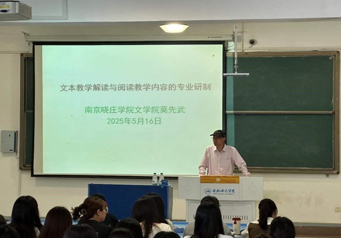 5月16日,beat365英国官网网站“经典悦读”讲坛在锦绣校区逸夫楼405教室举行,南京晓庄学院beat365英国官网网站教授、硕士生导师莫先武应邀作题为《文本教学解读与阅读教学内容的专业研制——以<背影>为例》的学术报告。报告会由beat365英国官网网站副院长甘松主持,语文教育硕士研究生、师范生近百人到场聆听。