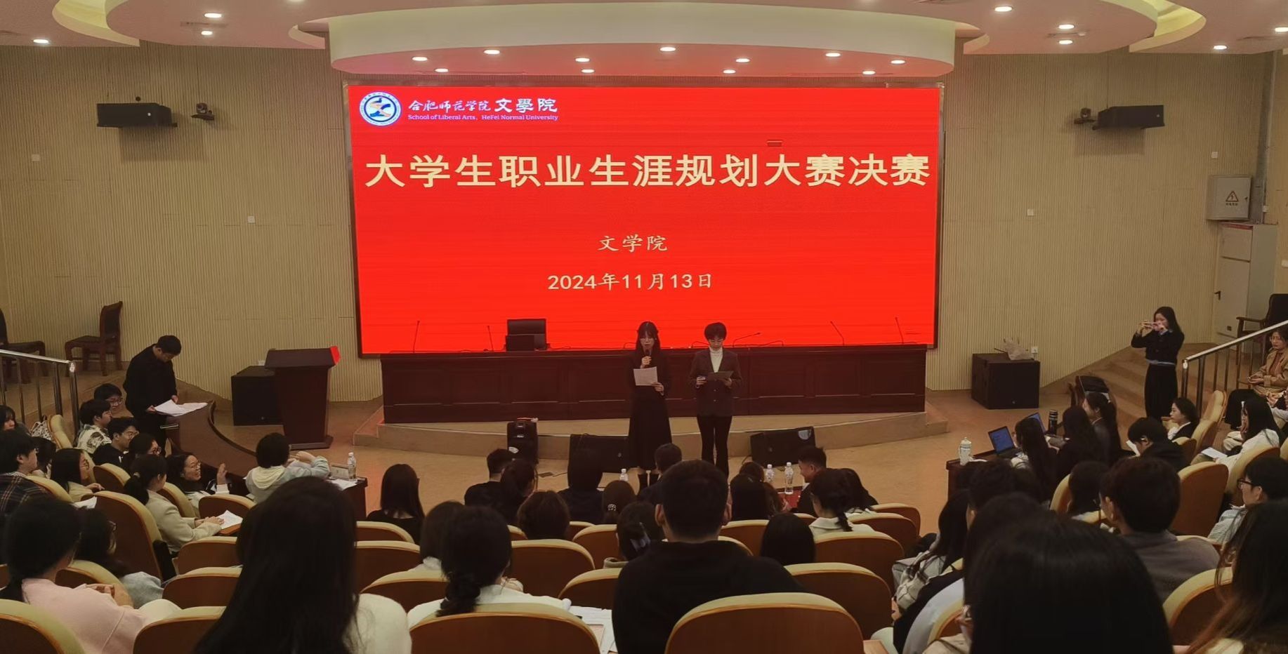 为进一步加强学生生涯教育与就业指导,提升学生职业规划能力,引导学生树立正确的就业观与择业观,激发学生潜能,提升育人质量,11月13日,beat365英国官网网站在滨湖校区学术报告厅举办第四届大学生职业生涯规划大赛。学院党委负责人、各年级辅导员担任评委,滨湖校区学生干部及部分学生代表现场观看比赛。