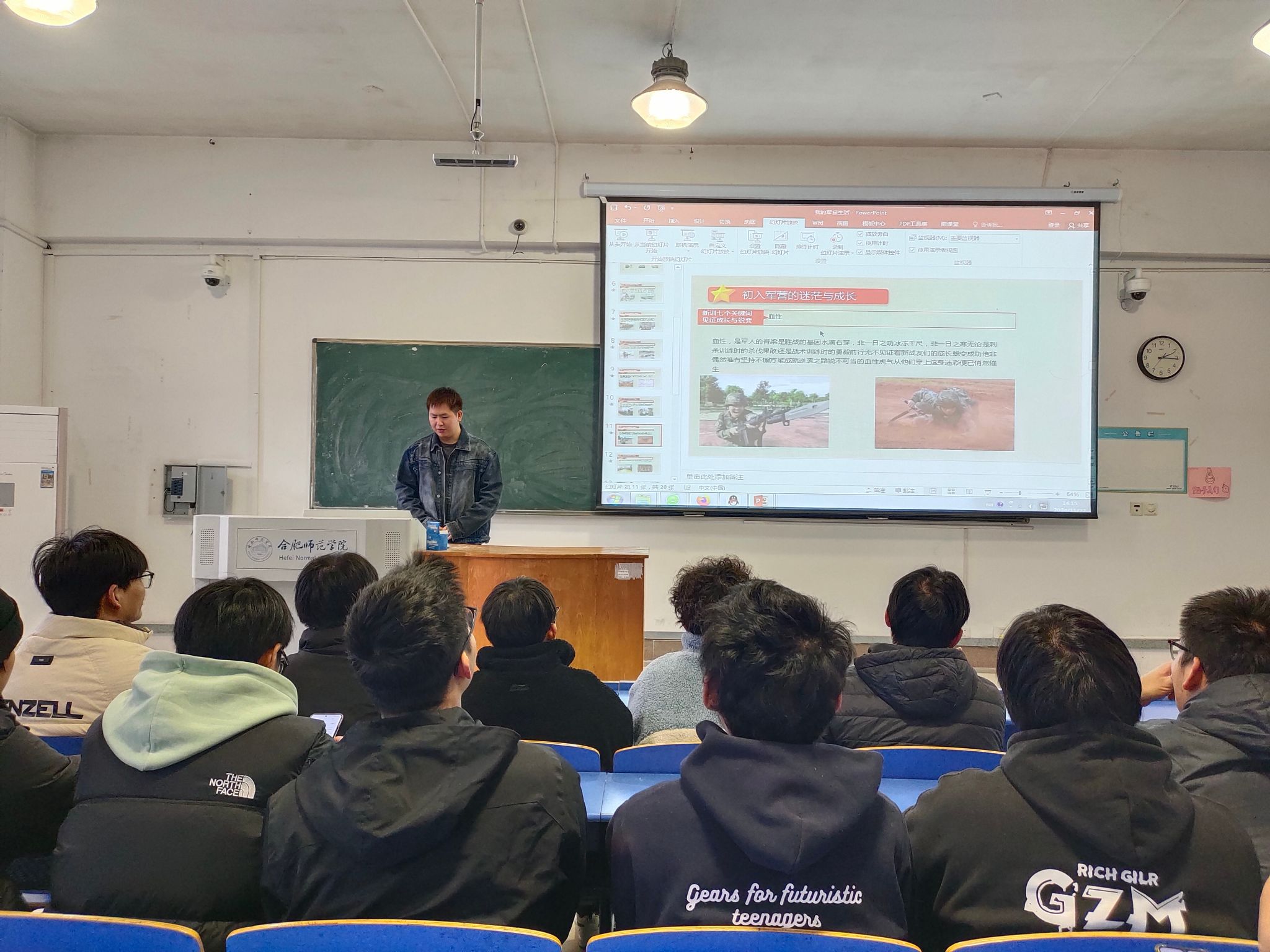 宣讲会上,仇操操深入地分享了自己军旅生涯的四个重要方面:初入军营时的迷茫与成长、深刻理解军人职责与荣誉、参军带来的影响与改变,以及从军经历中获得的启示与建议。潘浩然则向同学们表达了他的入伍动机和服役期间的感受,并分享了他的个人心得。通过播放他在仪仗队训练时的视频,让同学们对仪仗队的训练以及丰富多彩的军旅生活有了更为直观的感受。他们向与会学生详细阐述了大学生在国防事业中的责任与担当,并为他们未来的职业规划提供了多样化的思考路径。此次宣讲会极大地激发了同学们的爱国情感和参军意愿,引导他们将个人理想与国家的发展紧密相连,为实现中国梦和强军梦贡献自己的青春力量。