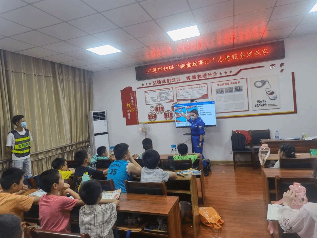 炎炎夏日,为了全面提高学生的安全意识,帮助广大学生增强防溺水安全意识、掌握防溺水知识技能、提高自救和他救能力,2022年8月3日下午三时,南塘社区七彩课堂认真落实“安全第一,预防为主”的方针,紧紧围绕“珍爱生命,远离溺水”的主题,在这里举行了一场别开生面的“防溺水”安全教育专题讲座,在这里我们有幸邀请到了蓝天救援队队员来给同学们演讲展示。