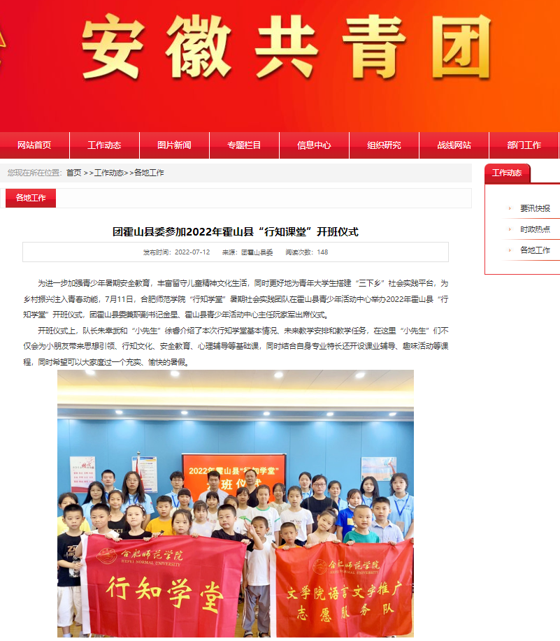安徽共青团官网报道beat365英国官网网站霍山“行知学堂”暑期实践活动