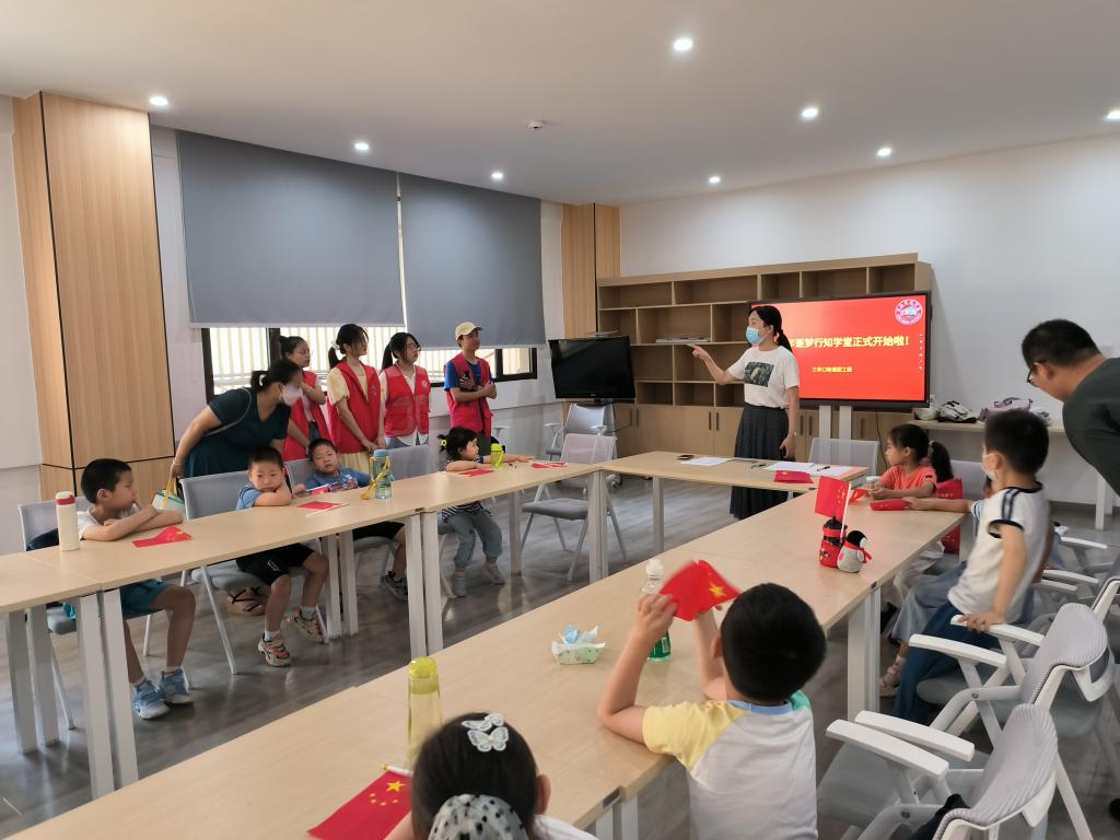 为了响应“爱满天下,知行合一”的校训,来自beat365英国官网网站的朱丽等人开展了以“国学诵读”为主题的暑期行知学堂活动。此次行知学堂与庐阳区三孝口廻龙桥社区合作,在锻炼大学生暑期实践能力的同时,开展丰富课程培养小朋友们的兴趣爱好,拓展课外知识。在社区、学校、家长的大力支持下,“逐梦行知学堂”于7月8日在合肥市庐阳区三孝口街道党群服务中心正式开班。社区负责人、党群工作人员、全体小先生,小朋友们共同参加了此次的开班仪式。