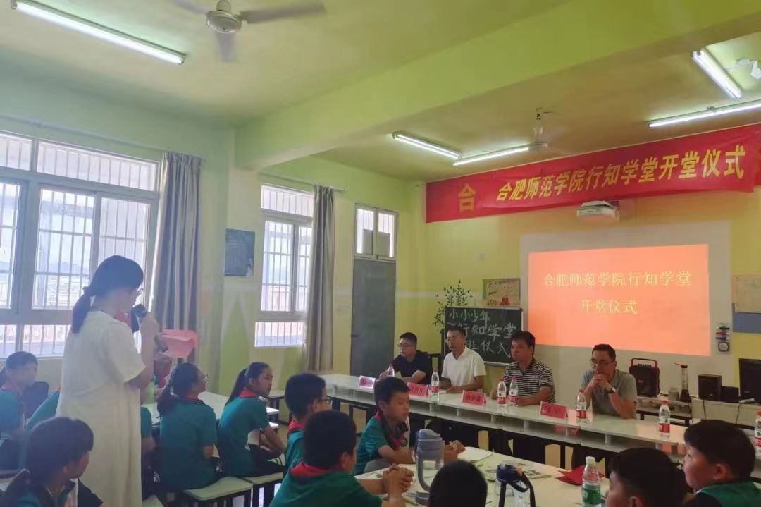 7月2日,beat365英国官网网站主办的行知学堂在县实验小学启动开班仪式。县青年志愿者协会副会长余业盛,实验小学党支部副书记刘世平、德育处主任何军、少先队辅导员张彬彬参加仪式。