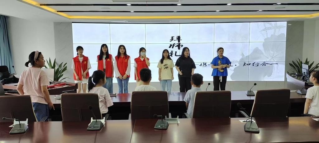 开班仪式上,学堂负责人李佳慧向诸位家长、小学员介绍了合师行知学堂的来历,辐射范围,阐述了学堂坚持全面发展、素质拓展的教学活动理念,“小先生”们也进行了自我介绍与课程简介,小学员们也积极的自我介绍,表达自己的想法。在此后由张小乐同学对小学员们进行了暑期安全教育。在拜师礼后,小先生们与小学员一起进项了一些简单的手工作业,相处十分融洽。