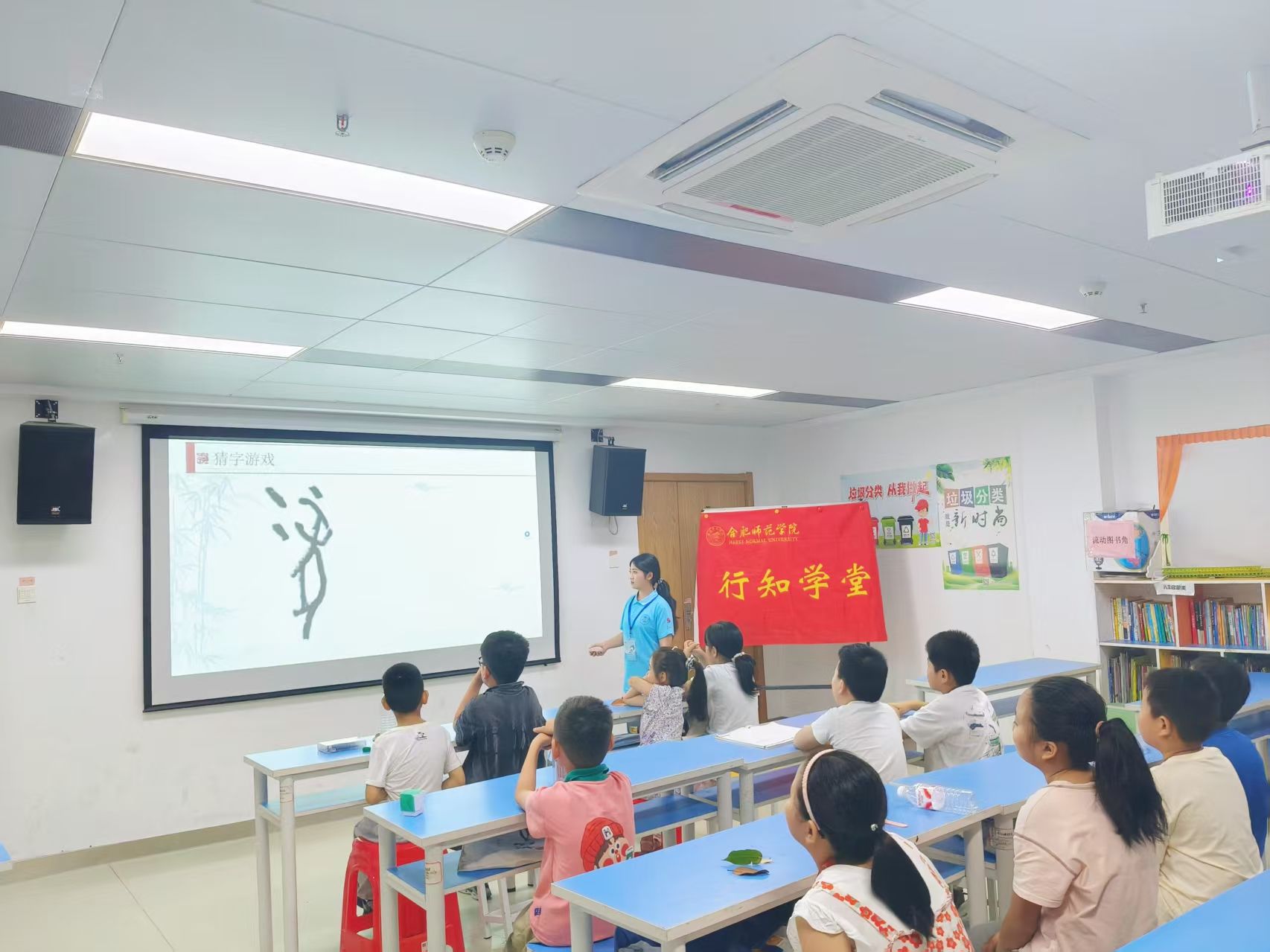 为了让知识“活”起来,课堂的重头戏之一——“猜字大冒险”环节点燃了全场的热情。小先生们精心挑选了一批形象鲜明的甲骨文字,如“月”“山”“水”“人”“鱼”“雨”“牛”等。当这些古朴的图形展现在屏幕上时,孩子们的小脑袋飞速运转起来:“这个弯弯的,是月亮吧?”“这个有角的动物,是牛吗?”教室里小手林立,抢答声此起彼伏。每当一个字符被成功“破译”,都会引来一片兴奋的掌声和欢呼。