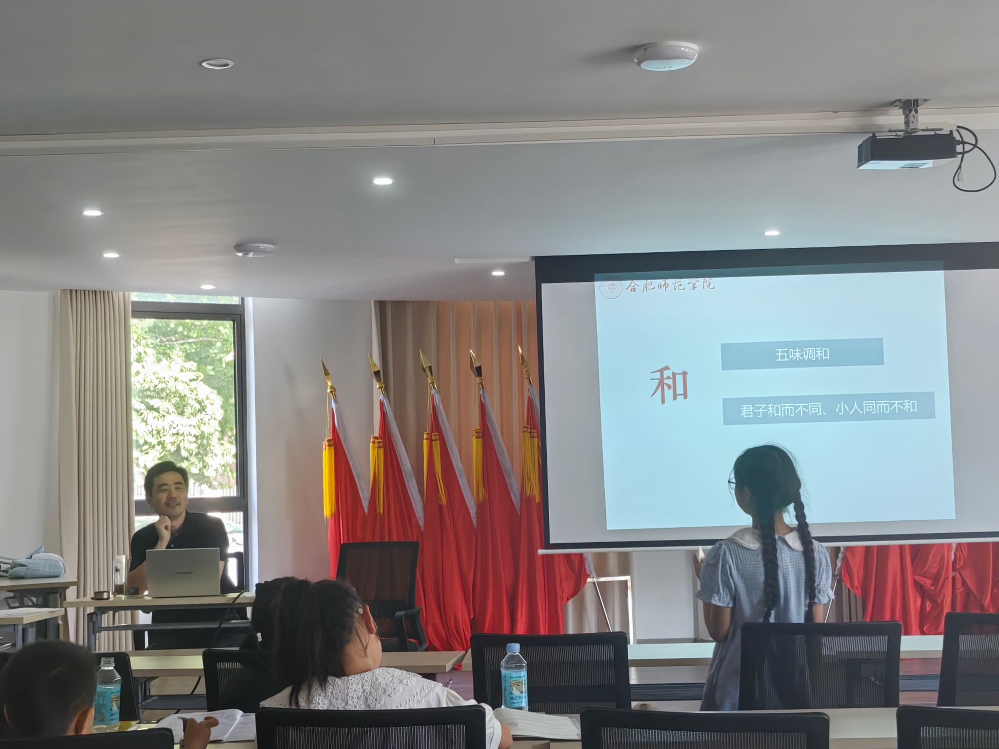 投影仪播放出伊尹的照片,王开春教授引导学员们观察:“大家看,这是伊尹,商汤的宰相,他旁边的鼎,意为他原本的厨师身份,为什么他能成为宰相呢?这就要说到‘五味调和’了。”